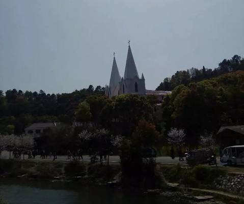 遙遙相對的是新落成的哥特式黃石天主教堂,坐落于團城山公園西側,睡美人山北側,三面青山環抱,臨磁湖碧波萬頃,藏城中卻遠塵囂,最為修心養性之所,遠遠望去,那象牙式的(仿)哥特式尖頂建筑,襯差紅瓦綠樹倒映在碧綠中,顯得格外幽靜肅穆。