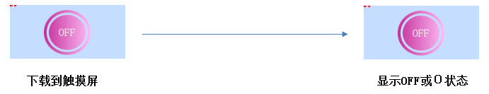 置位:下載到觸摸屏后,觸摸/點擊該位按鈕即可把寫入地址的值置成1,并顯示1/ON狀態