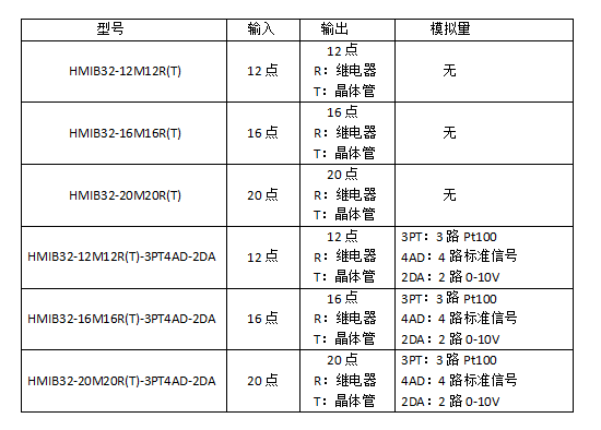附:7寸HMIB32系列觸摸屏PLC一體機選型表