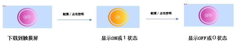 定義:位按鈕可以用來操作和顯示與觸摸屏所連接的設備的位地址 ON/OFF狀態,或者1/0狀態。