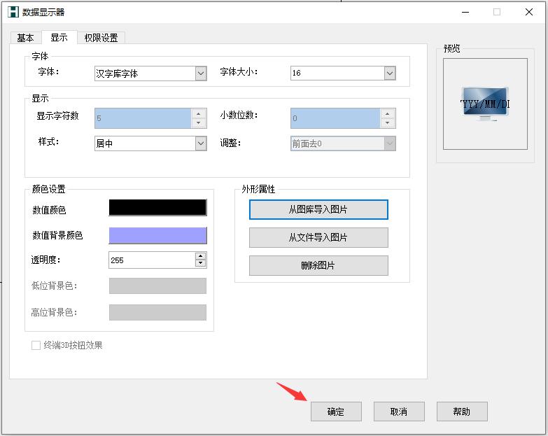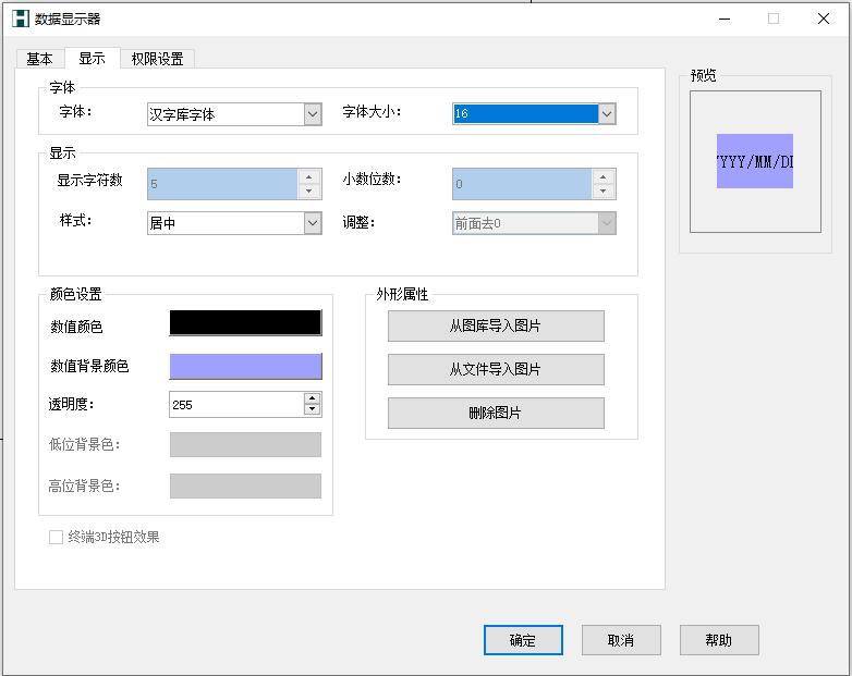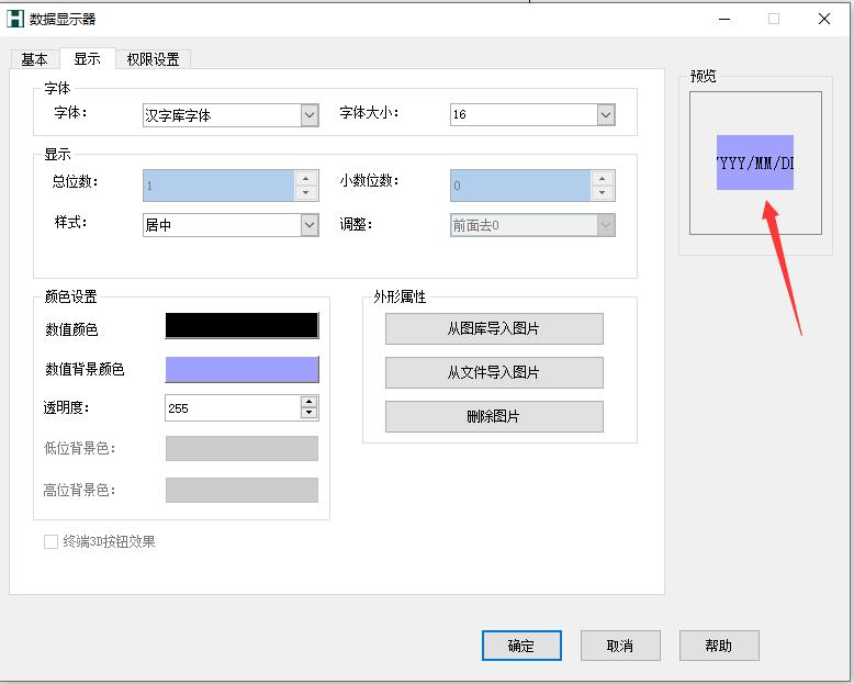 定義:對數(shù)值顯示器外觀、背景色、文本和文本對齊方式進行設置