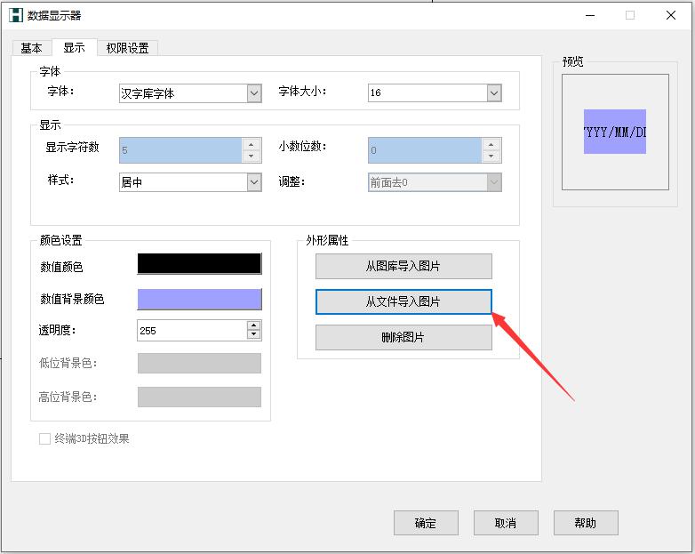 從文件中導入圖片:從本地選擇合適的圖片作為數(shù)值顯示器的外形,例如